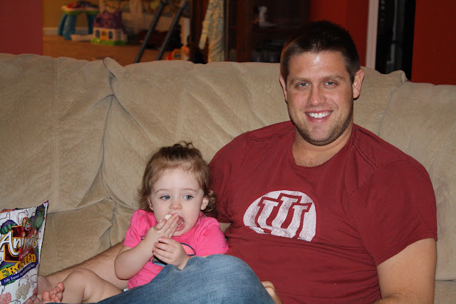 I think she is boy-crazy already. She got real shy and hardly said a word around Joshie. March Madness has started so games are always on. Josh and Scott came to watch a few. Josh won her over with some cookies. Speaking of the games... this might be the worst bracket I have ever filled out. Its just a disaster, I was hanging in there at 4th but its over now i must be last.